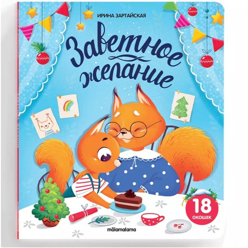 Удивительная и трогательная история Ирины Зартайской «Заветное желание» о крошке Бельчонке, который очень хотел получить много подарков на самый любимый праздник в году. Что же попросить у Дедушки Мороза? Новые коньки? Санки? Рюкзак? А может... что-то гораздо более важное? Читайте историю крошки Бельчонка, готовьтесь вместе с ним к Новому году, и открывайте для себя своё самое заветное желание. Яркие добрые иллюстрации, большие красочные окошки, новогодняя атмосфера и праздничное настроение — в книжке с окошками от торговой марки Malamalama!