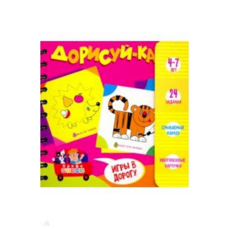 Дети, путешествие и дорожная игра 'Дорисуй-ка!' - идеальное сочетание! В наборе 24 интересных творческих задания (обведи по точкам, нарисуй, раскрась). Компактный и лёгкий блокнот не займёт много места в багаже и станет любимым развлечением ребёнка в пути. Твёрдый переплёт позволит играть на любой поверхности. Да, карточки многоразовые - можно стирать нарисованное и рисовать новое без конца!