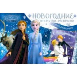 Новогодние открытки-раскраски с наклейками