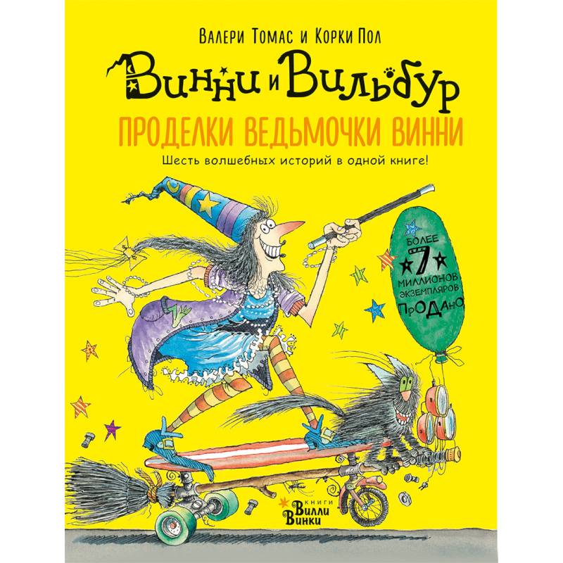'Проделки ведьмочки Винни: шесть волшебных историй в одной книге' включают в себя: 'Винни и полуночный дракон', 'С днём рождения, Винни!', 'Винни и ковёр-самолёт', 'Винни и восхитительная тыква', 'Винни в космосе' и 'Винни в подводном мире'.
