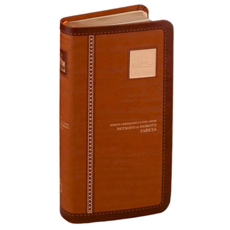 .Формат 83х175 мм, переплет из экокожи, 'золотой' обрез, закладка, индексы для поиска библейских книг.