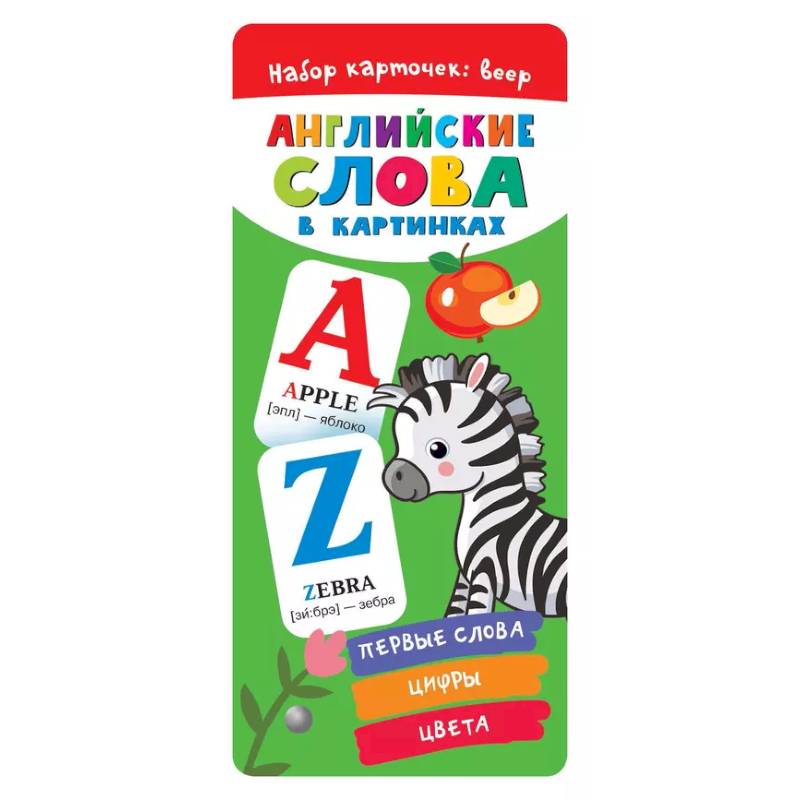 Яркий и познавательный веер «Английские слова в картинках» — двусторонние игровые карточки с закруглёнными краями. Это идеальный помощник для родителей, которые хотят заниматься с ребёнком с самого раннего возраста. 100 новых слов на английском языке + 80 классных картинок специально для самых внимательных и любознательных — крупные буквы английского алфавита, которые играют с малышами в прятки, их очень интересно искать в словах. Бонусом к английскому алфавиту прилагаются цвета радуги и счёт до 10 — идеально для развития речи и обогащения словарного запаса.