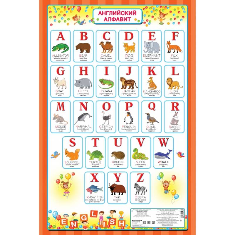 Плакат 'Английский алфавит' — прекрасный подарок для детей, которые делают первые шаги в изучении английского языка. С этим плакатом ребёнок без особого труда выучит английский алфавит, а также запомнит первые слова. Для этого достаточно повесить повесить плакат на стену в удобном месте: то, что постоянно перед глазами, быстро и легко запоминается.