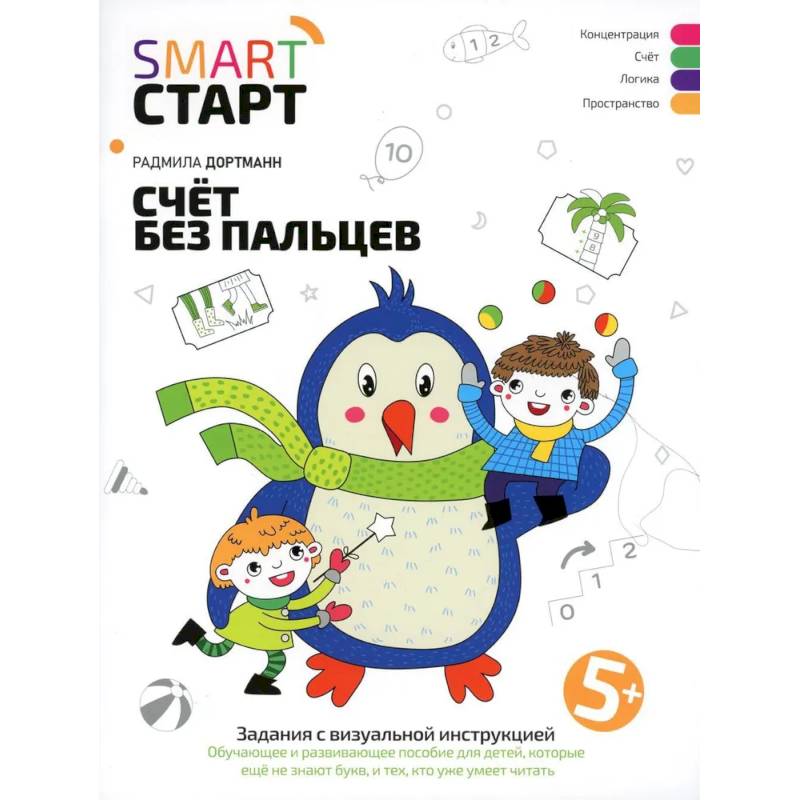 Каждая книга серии «Smart-старт» — это система заданий и упражнений, направленная на развитие конкретного навыка. Яркие и интересные задания серии «Smart-старт» разработаны с упором на визуальную инструкцию, что позволяет ребёнку легко (нативно) понимать и выполнять упражнения без участия взрослого.