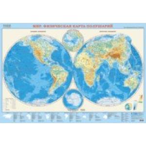 Настенная карта 'Мир. Физическая карта полушарий' дает общее представление о расположении материков и океанов, о сложном рельефе нашей планеты, о морских течениях в разных частях Земли.