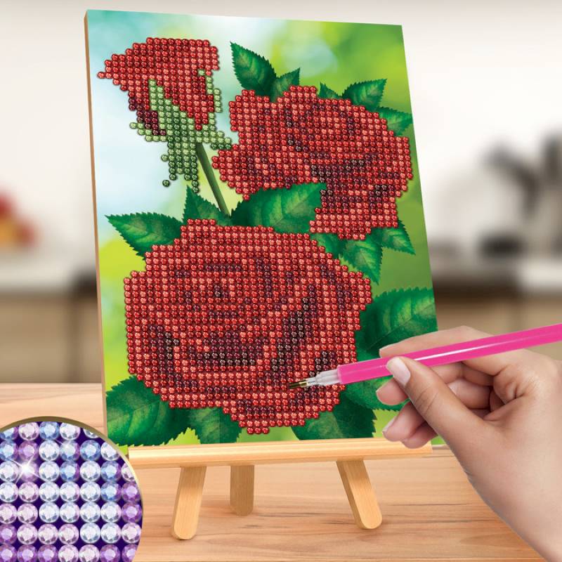 Часть картины предстоит заполнить стразами, другая часть напечатана на самом холсте — такое изделие легче и быстрее создать. Поэтому набор такого небольшого формата подойдёт для тех, кто впервые пробует свои силы в этой технике или любит быстро добиваться результата.