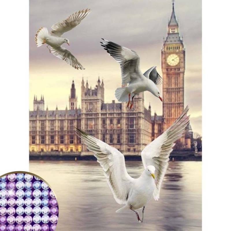 —Алмазная вышивка с частичным заполнением «Чайки», 30 x 40 см, холст. Набор для творчества