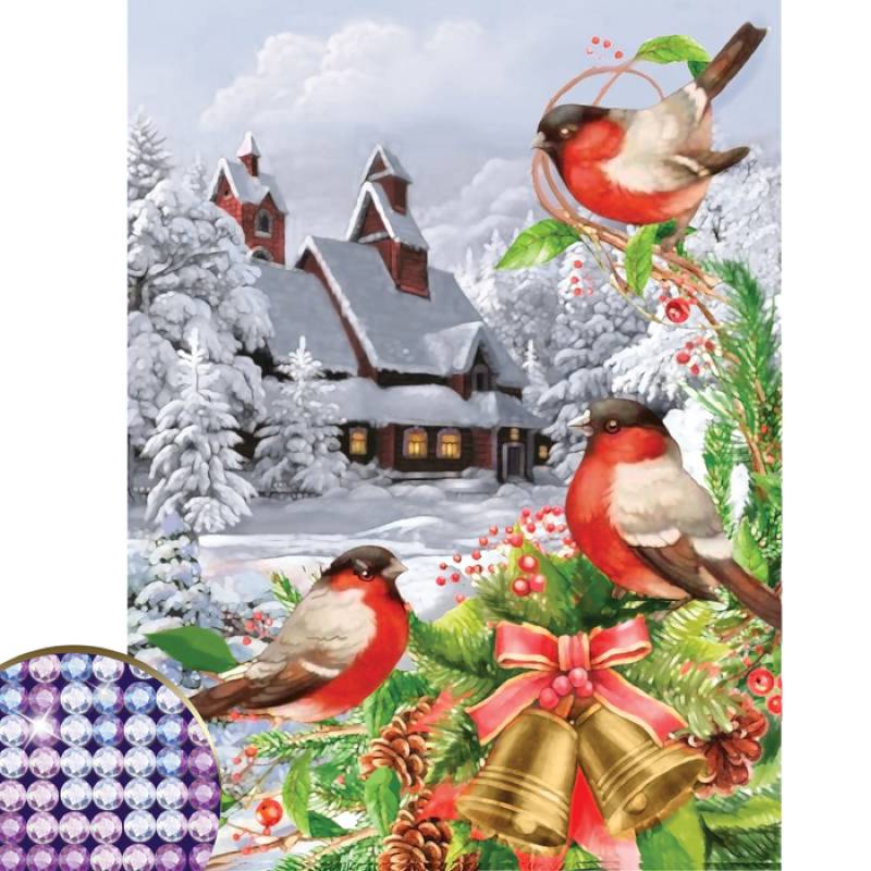 —Алмазная вышивка с частичным заполнением «Снегири» 30x40 см, холст, ёмкость