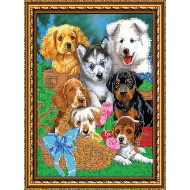 —Набор для вышивания бисером №147 «Щеночки» бисер Чехия 37,2x49,7 см