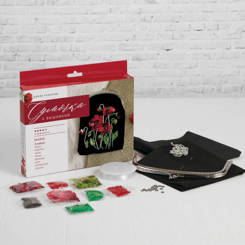 —Набор для вышивания бисером на сумке 'Маки'