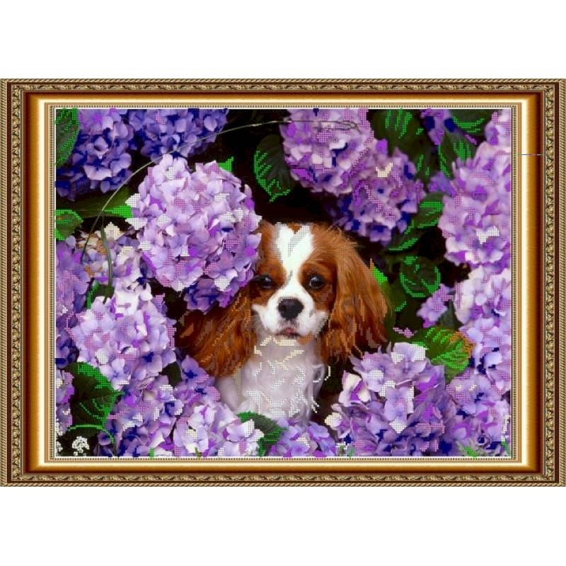 —«Светлица» набор для вышивания бисером №062 «Щеночек в цветах» бисер Чехия 49,9x36,1 см