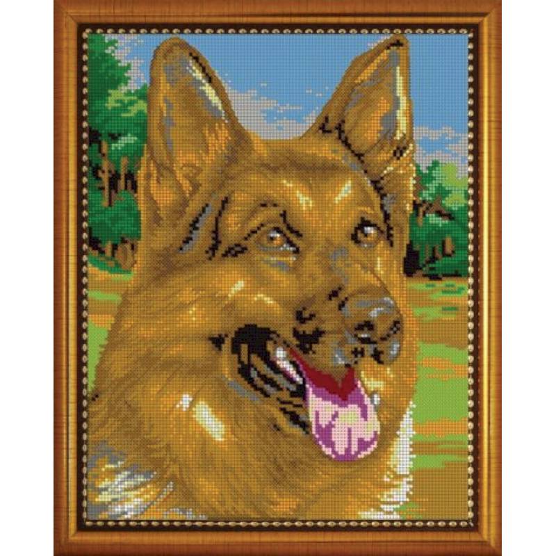 ВЛ-045П 'Немецкая овчарка' 24x30см набор на атласе для вышивания чешским бисером 'Вышивочка' в коробке