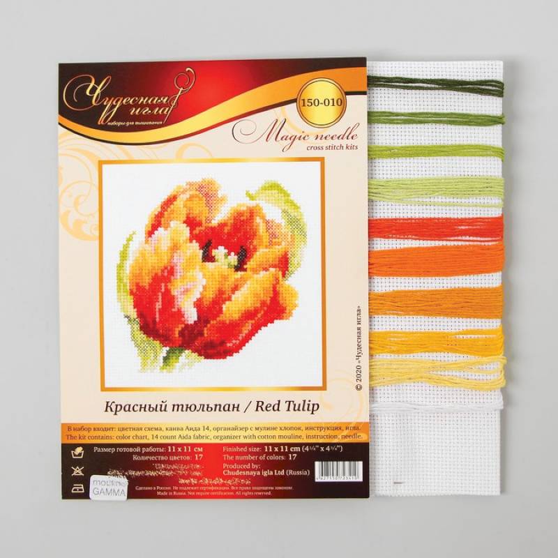 —Набор для вышивания крестом «Красный тюльпан» 11x11см