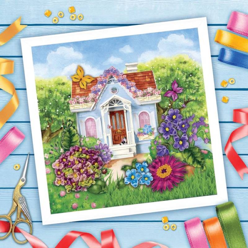 Вышивка лентами 'Пейзаж', 25x35 см